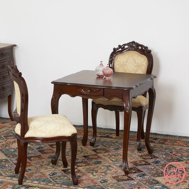 Como(コモ) フランシスカ アンティーク調 おしゃれ デザイン家具 インテリア 高級感 リビング ダイニングルーム 自然素材 ヨーロピアン クラシック 猫脚 ネコ脚 姫系 木製 テーブル ダイニング 引き出し 机